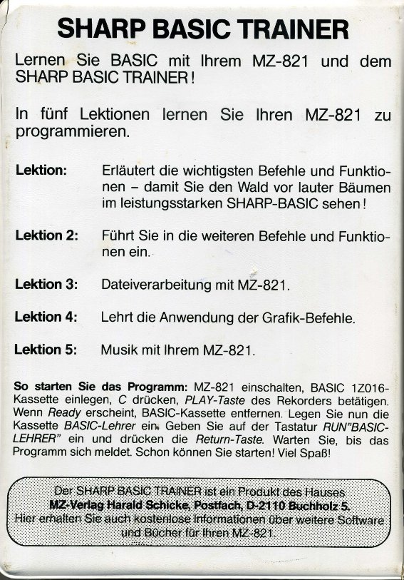| BASIC Trainer: | MZ-821, 2 Cassetten |